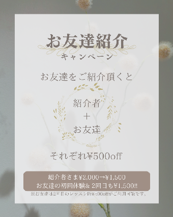 只今お友達紹介キャンペーン実施中!